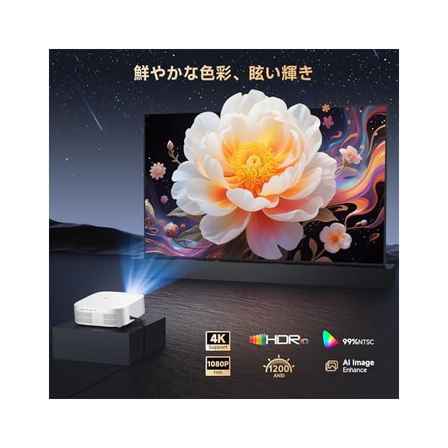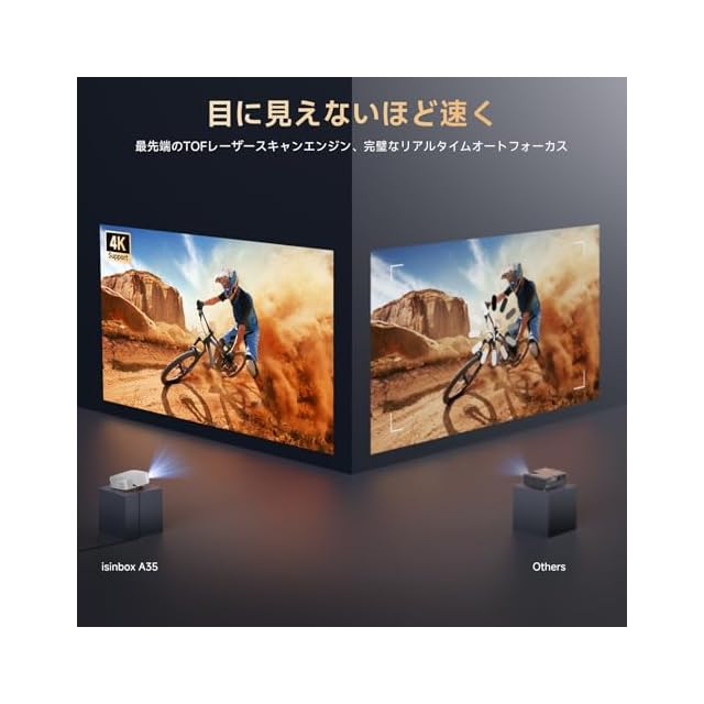 プロジェクター iSinbox 1200ANSI TOFオートフォーカス 1:1 投影比率 自動台形補正 アプリ内蔵 家庭用 小型プロジェクター 天井 WiFi 6&Bluetooth5.3 4K対応 ネイティブ1080p 300″大画面 8W スピーカー 静音 日本語取扱説明書