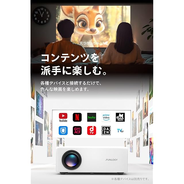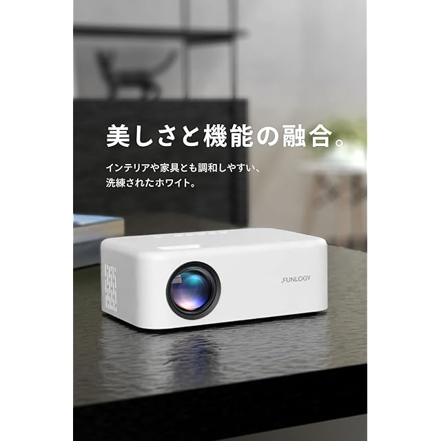 FUNLOGY Projector(プロジェクター/小型プロジェクター)【150ANSIルーメン/軽量0.5 kg/コントラスト 1000:1/HDTV 1280×720/接続用HDMIケーブル付属/台形補正/スピーカー内蔵/日本ブランド】 (ホワイト)