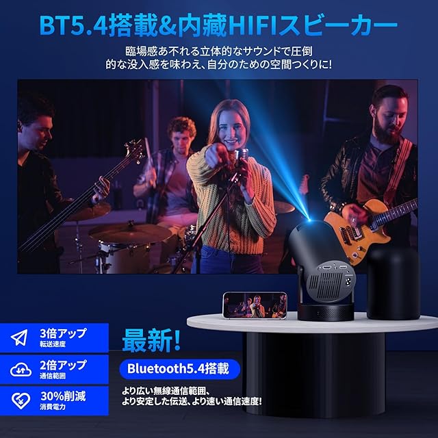 ✅【超高速Wi-Fi 6&Bluetooth5.4】弊社のプロジェクターは、高精度チップを搭載し、2.4GHz/5GHzデュアルバンドとWi-Fi 6をサポートします。強力かつ安定した超高速通信を実現できます。iOS/Android/Windowsデバイス(スマホ/タブレット/PCのミラーリング対応)へワイヤレスなどの接続が可能で、遅延のないオンラインゲーム、映画、動画を快適に楽しめます。また、Bluetooth 5.4を内蔵し、お好みによって、スピーカーやワイヤレスイヤホンやから音声を流し、立体感豊かな3Dサウンドを再生し、迫力ある映像をこだわりの音響環境で映画館のような雰囲気を作られます。