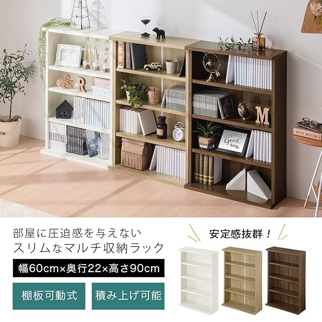 ぼん家具 カラーボックス スリムラック 本棚 薄型 幅60cm 4段 コミック 棚 可動棚 ウォールナット