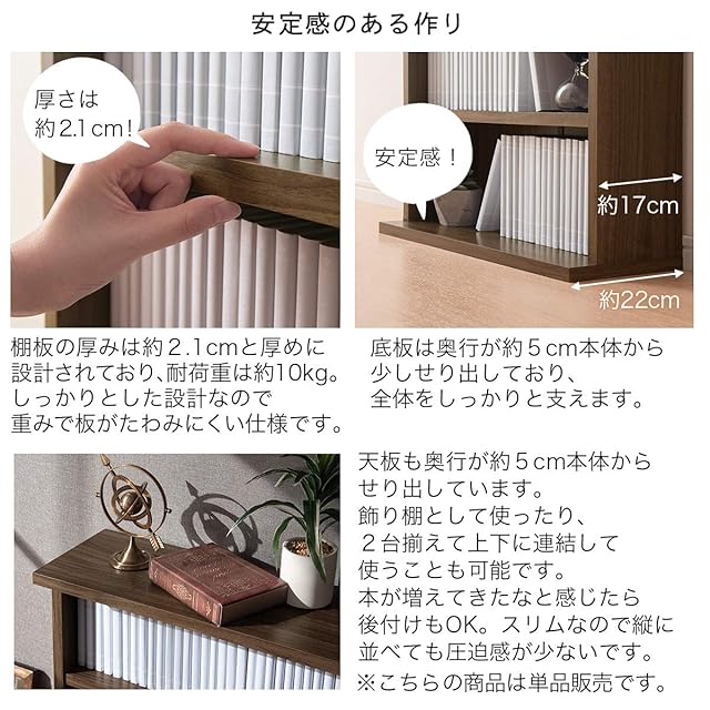 耐荷重 天板、各棚板、底板:約10kg 総耐荷重:約50kg / 背面化粧:無し