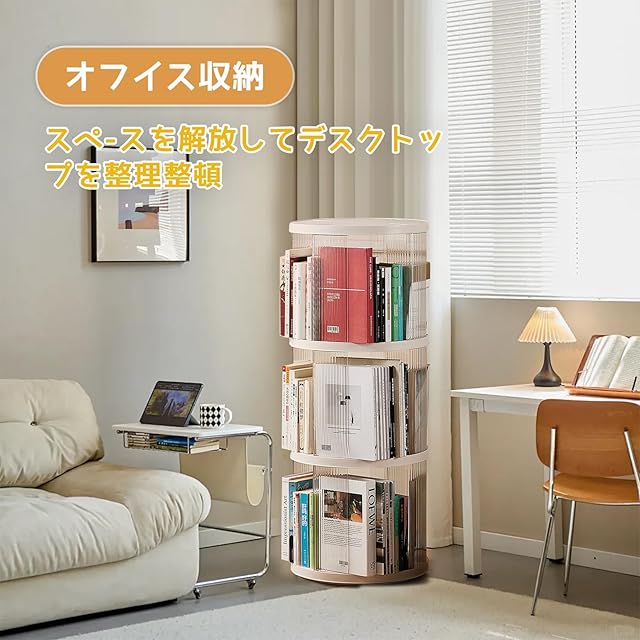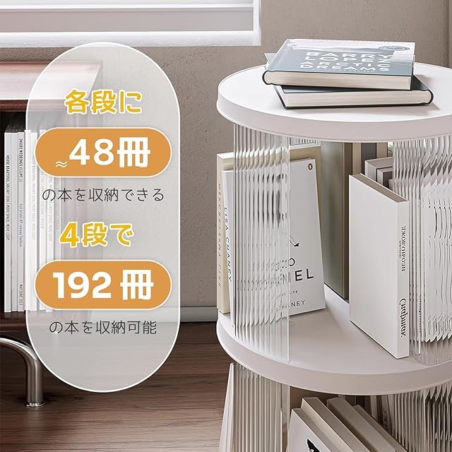 回転カルーセル - 本棚を360度回転させ、欲しい本を簡単に取り出せます。