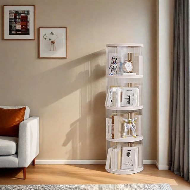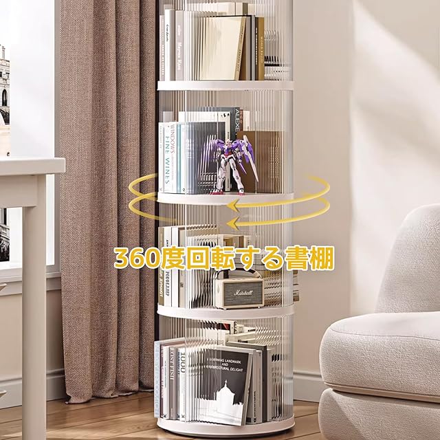 Raisme 4段 透明プラスチック製 360°回転本棚 回転台 軽量設計 大容量収納 コミック/絵本棚 組立簡単 省スペース 飾り棚 収納ラック (4段)