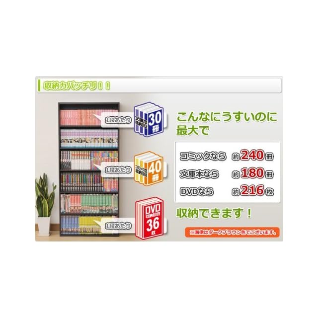 【スリムだけど大容量】コミック本なら約200冊とたくさん収納できるので、お部屋をすっきり片づけられるラックです。収納目安(最大):コミック200冊、DVD180枚、文庫本150冊