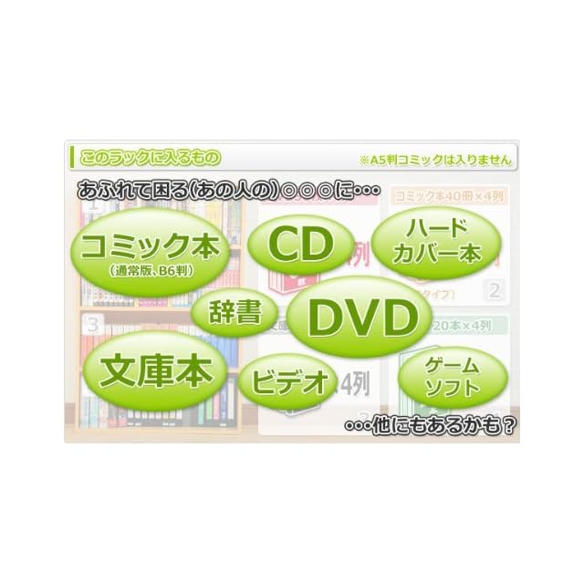 【奥行スリム】コミック、DVD、CD、文庫本など本やソフト収納に適当な奥行スリムで省スペースなラックです。