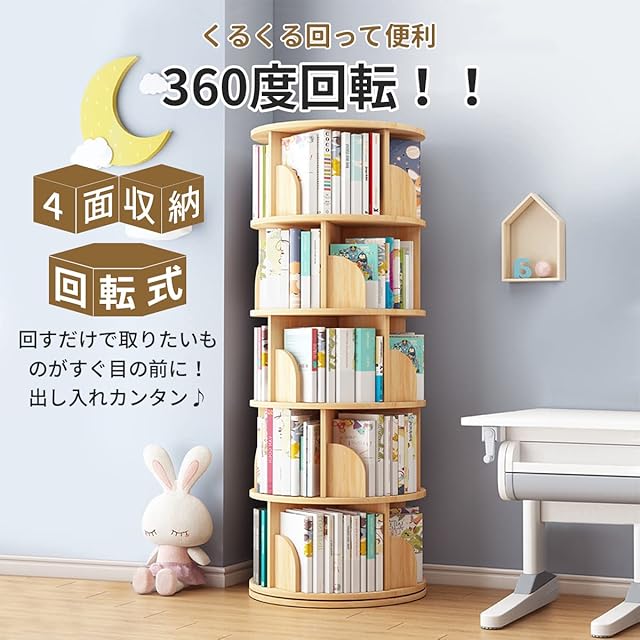 【安心な1年】ご購入頂いた回転式本棚は1年間メーカー保障が付いております、商品の品質には万全を期しておりますが、万が一商品に不具合等発生したら、いつでもお気軽に出品者にお問い合わせください、迅速に無料交換や返金対応させていただきます。ご安心ください。