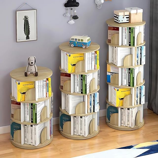 回転式本棚で簡単に整理:この回転本棚は360度自由に回転でき、どの角度からでも簡単にアクセスできます。軽く回すだけで、必要な本をすぐに見つけることができ、混乱を防ぎます。360°回転式本棚は本や展示物を美しくディスプレイするための理想的なアイテムです。厚みのある木板が高い安定性と耐久性を提供し、各段は木板で仕切られており、本の倒れを防ぎながら分類を簡単にします。