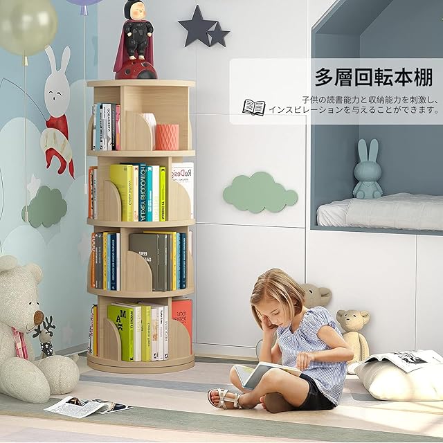 省スペースでお部屋をスタイリッシュに:このスリムで回転本棚子供にも使いやすいデザインは、限られたスペースを最大限に活用できます。狭い部屋やコーナーにぴったりで、従来の本棚と比べて占有スペースが小さく、収納容量が大きいです。お部屋のどこにでも適応し、空間を節約しつつ、お部屋の装飾としても魅力的です。家族や友人へのプレゼントにも最適です。