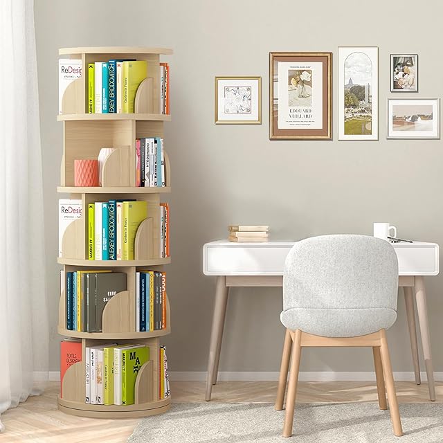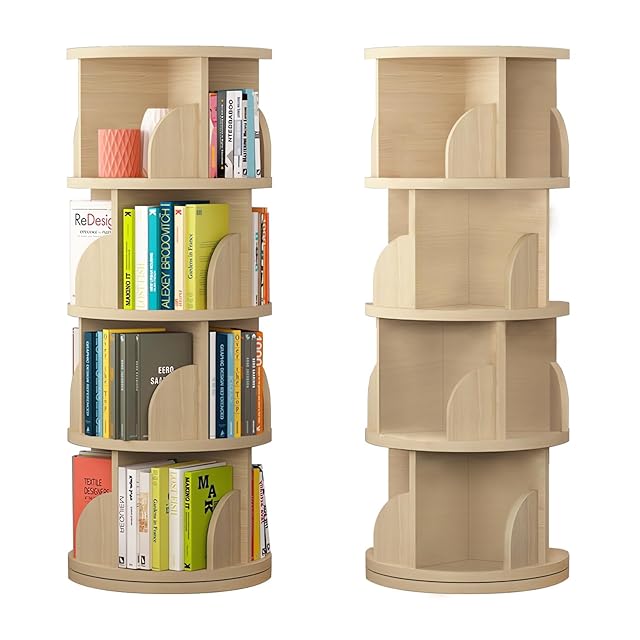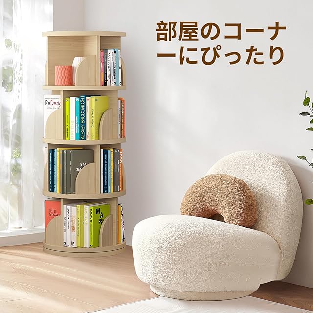 多用途でどんな部屋にもフィット:高品質な密度板を使用したこの回転式本棚は、優れた安定性と耐久性を備えており、リビング、寝室、バルコニー、オフィス、廊下など、さまざまな場所で使用できます。本棚としてはもちろん、収納棚や展示棚、整理棚としても役立ちます。回転式本棚は、空間を美しく整理し、機能的で実用的なデザインを提供します。