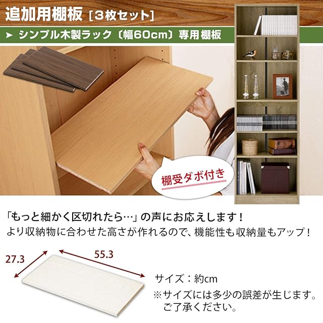 棚板ダボ付き(12個) / 同色3枚セット / 耐荷重:約5kg(1枚あたり)