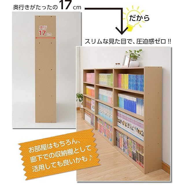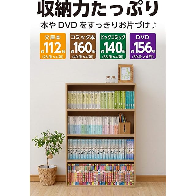 【スリムだけど大容量】コミック本なら約200冊とたくさん収納できるので、お部屋をすっきり片づけられるラックです。収納目安(最大):コミック200冊、DVD180枚、文庫本150冊