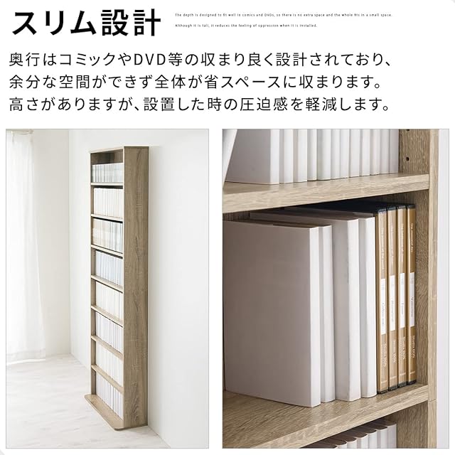 ぼん家具 本棚 幅60.1×奥行22.6×高さ179.9cm 8段 収納 コミックラック スリム 大容量 可動棚 ウォールナット