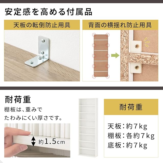 材質:プリント紙化粧繊維板 / 耐荷重 天板、各棚板、底板:約7kg / 背面化粧:無し