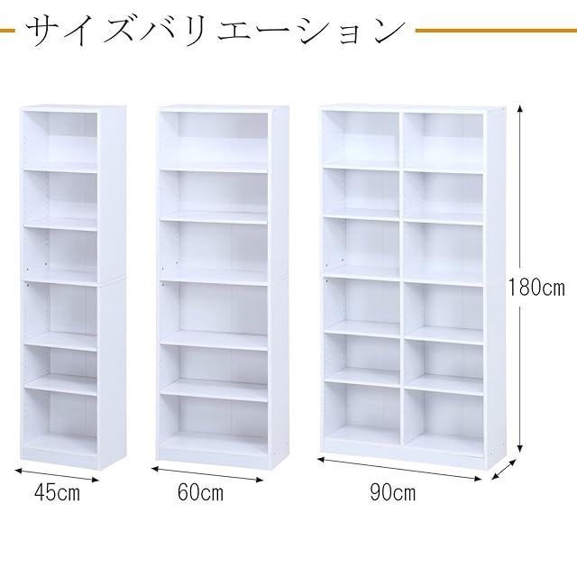 不二貿易 本棚 多目的棚 6段 1列 幅45×奥行29×高さ180cm ホワイト ブックシェルフ マガジンラック 可動棚 97546