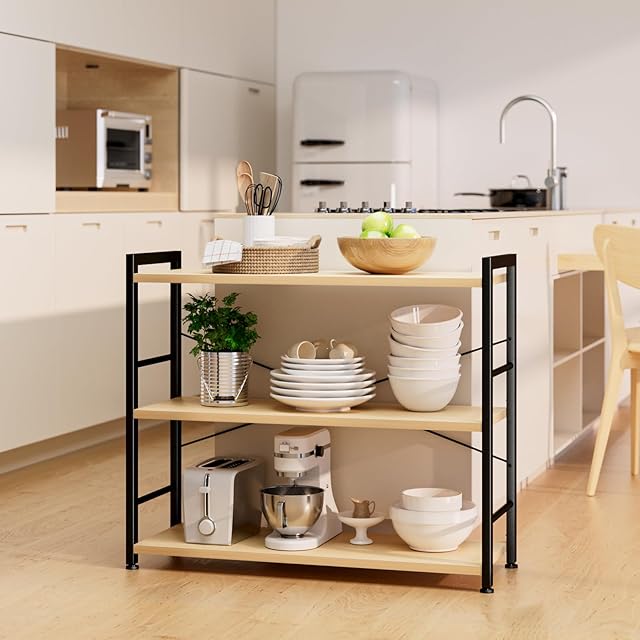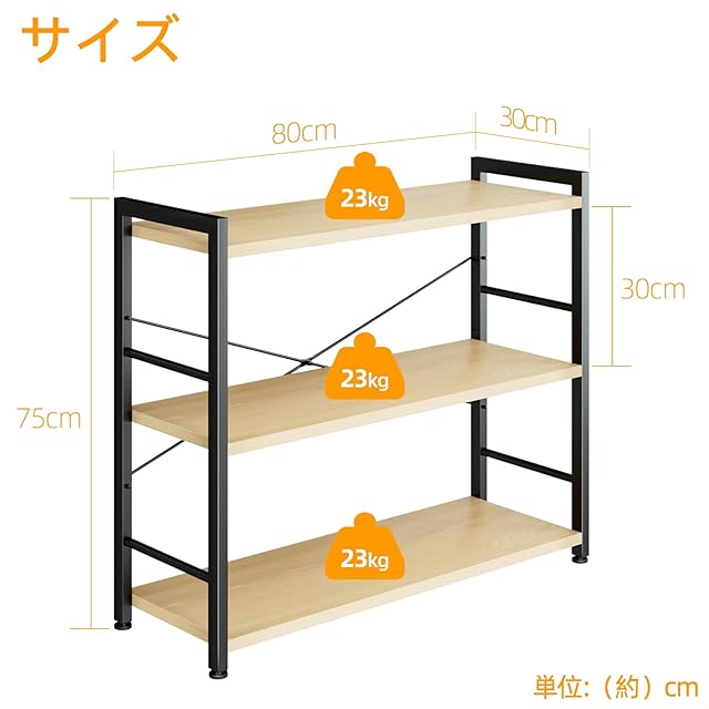 APPOLYN オープンシェルフ 本棚 3段本棚 多機能収納ラック 幅80×深さ30×高75cm 寢室 リビングルーム ホームオフィス ナチュラルオーク