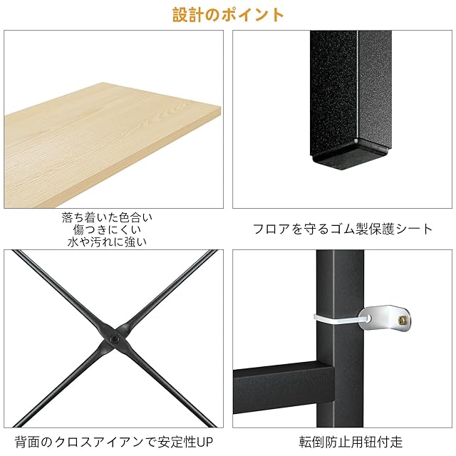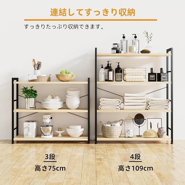 【高品質な金属製フレームと背面補強】高品質な金属とプラスターボードで作られたモダンな金属製のラックは安定性に優れています、頑丈で耐久性があります。最上級の防錆コーティングにより、ラック全体がよりおしゃれに見えます。高品質な金属製フレームと背面補強により、ラックの棚板一枚あたり23kgの耐荷重を持ち、背面の金属製クロスバーはラックをしっかり補強、重さのある生活用品を置いても大丈夫です。揺れたり、落下の心配はありません。
