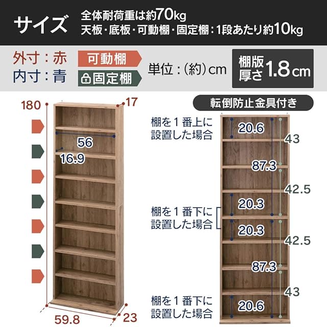商品サイズ(cm):幅約59.8×奥行約23.0×高さ約180.0
