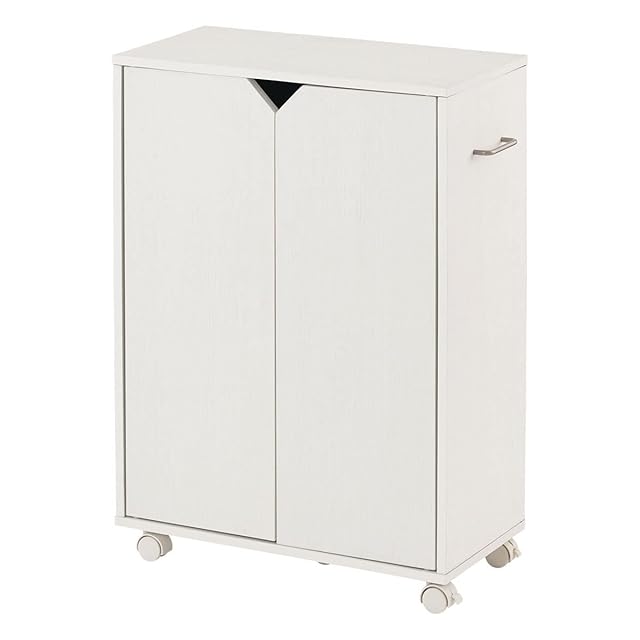 ぼん家具 本棚 扉付き ラック キャスター付 3段 約 幅61 取っ手付き 棚板高さ調節可能 ホワイト