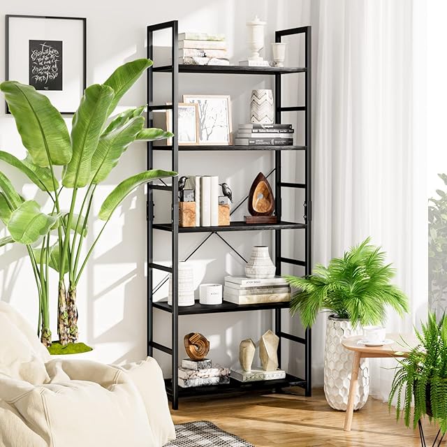 APPOLYN オープンシェルフ 本棚 ラック 5段本棚フリーラック棚 多機能収納ラック 幅60×奥行30×高さ158cm 木製ラック 寢室 リビングルーム ホームオフィス ブラック