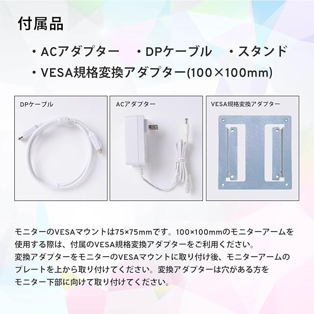 [機能] AMD FreeSync Premium / G-SYNC compatible / Flicker Free / VESAマウント(75mm) / ブルーライトカット / Overdrive / Black Equalizer / スピーカー内蔵(3W ×2)