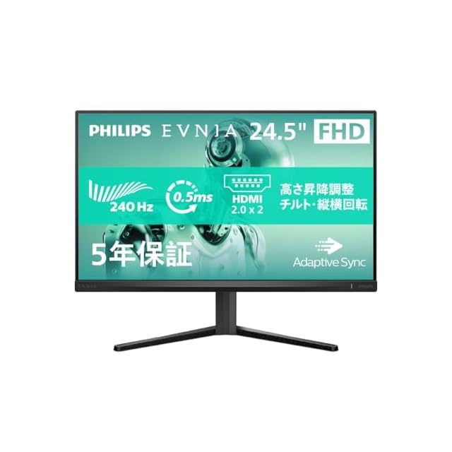 PHILIPS EVNIA ゲーミングモニター (24.5インチ/240Hz/フルHD/VA/0.5ms/Adaptive Sync/5年/チルト/昇降調整130mm/ピボット回転/HDMI2.0×2、DP1.4×1/PS5/Switch2/FPS向け/フリッカーフリー/ブルーライト軽減/電源内蔵) 25M2N3200W/11