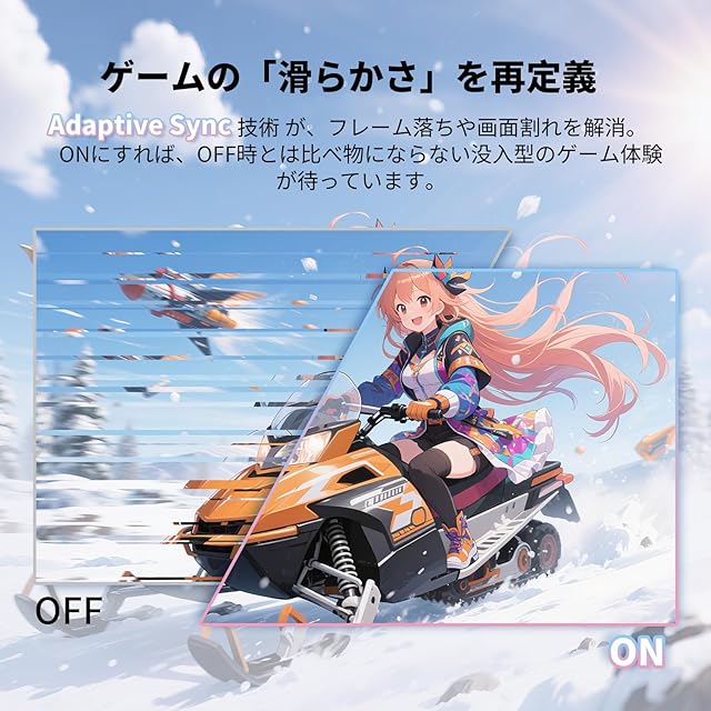 【Adaptive Sync対応でティアリングなし】Adaptive Sync技術に対応しており、画面のティアリングやスタッタリングを効果的に排除。ゲーム体験をスムーズにし、没入感を高めます。