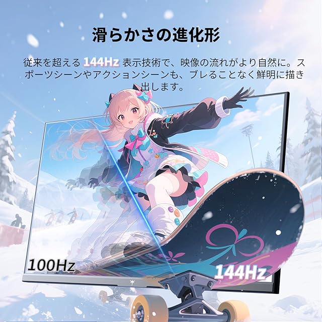 【144Hz高速リフレッシュ & Adaptive Sync】144Hzの高リフレッシュレートとAdaptive Sync技術により、画面のティアリングやスタッタリングを解消。FPSやアクションゲームの高速シーンも滑らかに表示し、競技レベルのゲームプレイをサポートします。