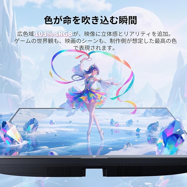 【高精細IPSパネル & プロ級色再現】1920×1080フルHD解像度のIPSパネルを採用し、103% sRGB広色域とΔE<2の高色精度で、ゲームからクリエイティブ作業まで正確な色彩表現を提供。1500:1の高コントラスト比と300cd/㎡の輝度で、明暗のディテールもくっきりと表示します。