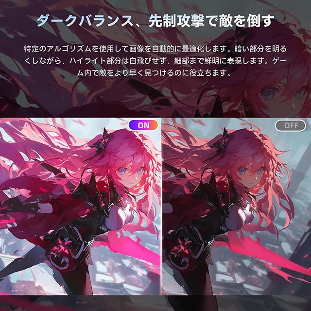 FHD Fast VAパネル:1920×1080解像度のFast VAパネルを採用し、4000:1の高コントラスト比で深い黒を表現