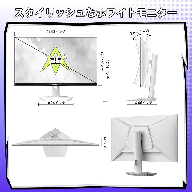Amzfast 25インチ 320Hz ゲーミングモニター白 Fast IPS (1msMPRT /sRGB118%/320cd/m²) /Adaptive Sync対応 / HDMI2.0×2 DP1.4×2 低ブルーライト 5年 ホワイト AMZG25F6F(HDMI+DP ケーブル付属)