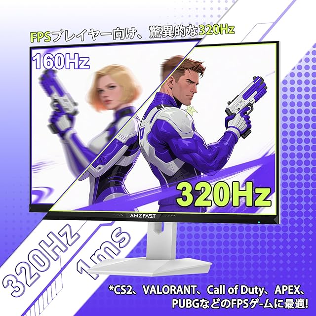 Amzfast 25インチ 320Hz FHD 1080P ゲーミングモニターFPSプレイヤー向け、驚異的な320Hzリフレッシュレート*CS2、VALORANT、Call of Duty、APEX、PUBGなどのFPSゲ-ムに最適!