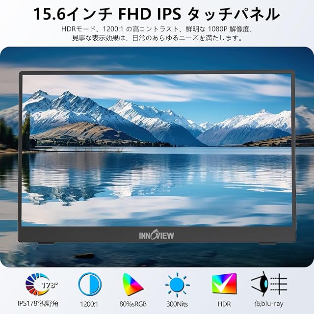 モバイルモニター 15.6インチ タッチパネル InnoView モバイルディスプレイ 自立型 ポータブルモニター ゲーミングモニター IPS液晶パネル 1920*1080 FHD タッチ機能 薄型 軽量 持ち運び 壁掛けに対応 Switch/PS3/PS4/PS5/Xbox One/PC/スマホ/USBType-C/標準HDMI対応/スピーカー内蔵 サブモニター