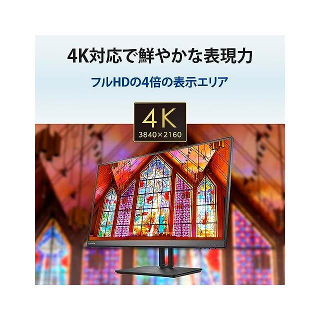 【4K対応でフルHDの4倍の表示エリアで鮮やかな表現力】フルHDの4倍の表示エリアの4K UHD(3840×2160ピクセル)に対応!映像の細部までをよりリアルに鮮明に表示できます。4倍の情報を表示できるので、ゲームやデザイン、ビジネスシーンでより多くの情報を一度に表示し、快適な作業を行うことができます。