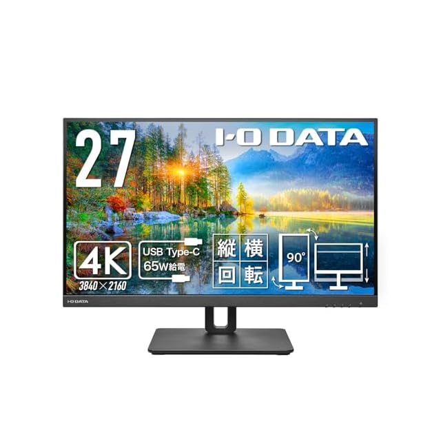 アイ・オー・データ IODATA モニター 27インチ 4K 60Hz AASパネル 広視野角 5ms (Type-C/HDMI/DisplayPort/高さ調整/縦横回転/スピーカー付/VESA対応/メーカー3年/土日サポート) EX-CU271AB-F