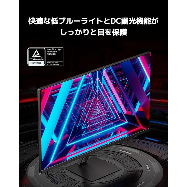 【低ブルーライトで快適】 TÜV低ブルーライト認証を受けた低ブルーライトモードは、短波ブルーライトをフィルタリングし、長時間の使用時でも目を快適に保ちます。DC調光機能はディスプレイのちらつきを効果的に低減します。ピッチ角度微調整機能と壁面取り付けで、どんな姿勢でもずっと快適にご利用できます。