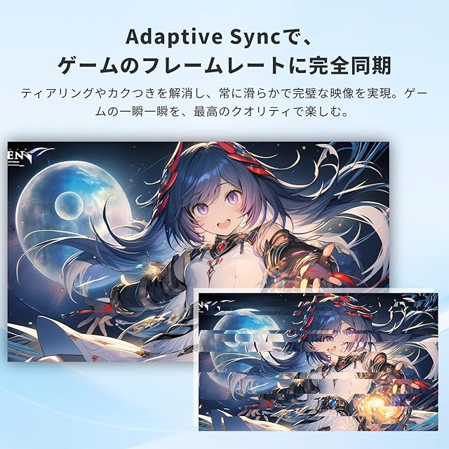 【Adaptive Syncでフレームレート完全同期】Adaptive Sync技術を搭載し、グラフィックカードのフレームレートとモニターのリフレッシュレートを完全同期。ティアリングやスタッタリングを解消し、常にスムーズで快適なゲームプレイを実現します