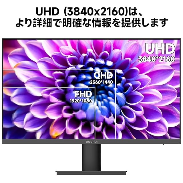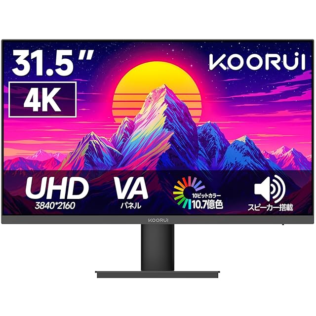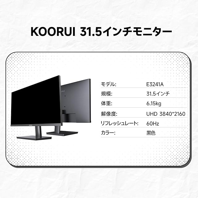 KOORUI 31.5インチ 3840*2160 60Hz VA 99% sRGB/DCI-P3 95% 3500:1コントラスト比 HDMI2.0×2、DP1.4×1、Audio×1 Adaptive sync対応 E3241A ビジネス用