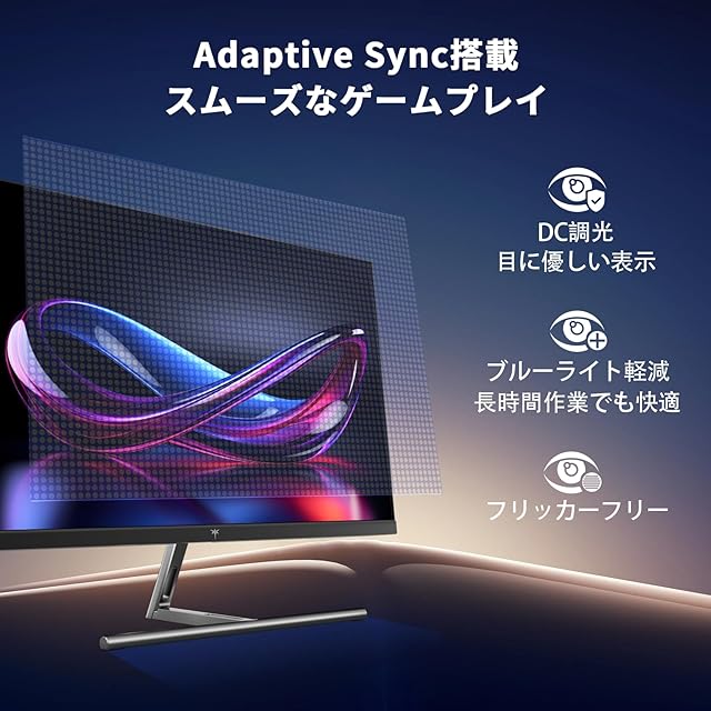 【アイケア技術とAdaptive Sync】Adaptive Sync技術に対応し、画面の乱れやティアリングを防止。 ハードウェアブルーブルーライトカット(Hardware LBL)とフリッカーフリー設計により、長時間の使用でも目の負担を軽減します。