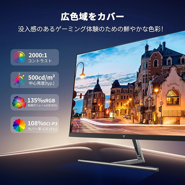 【HDR400 & 広色域】HDR400対応で明暗の差が鮮明、sRGB 135%ボリューム/DCI-P3 108% ボリューム /Adobe RGB116%ボリューム、10.7 亿(8 位+FRC)、ΔE<2 の高色精度、2000:1コントラスト比と500cd/m²の高輝度で色彩豊かな画面表現。