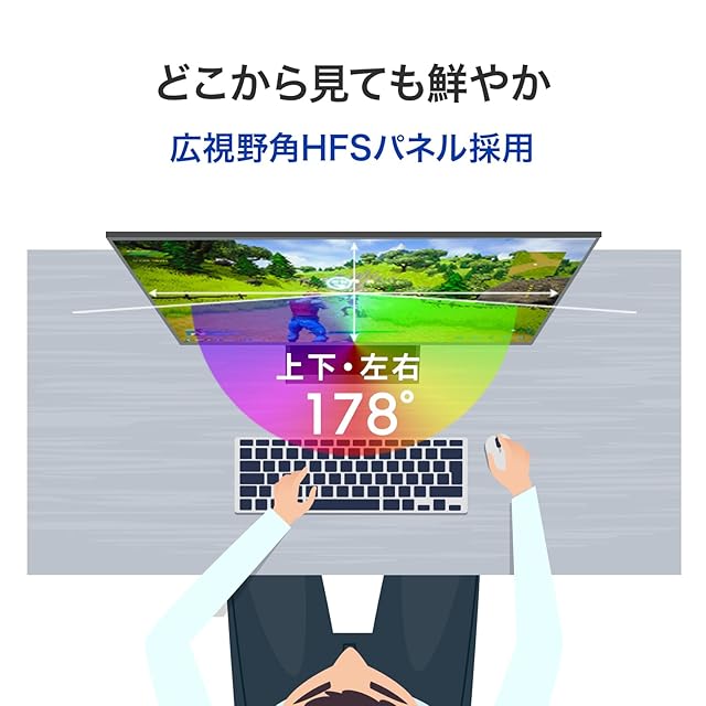 【どこから見ても鮮やか!広視野角HFSパネル採用】上下左右178°の広視野角なHFSパネルを採用。見る位置や角度による色やコントラストの変化が少なく、どこから見ても映像を鮮明に映し出します。