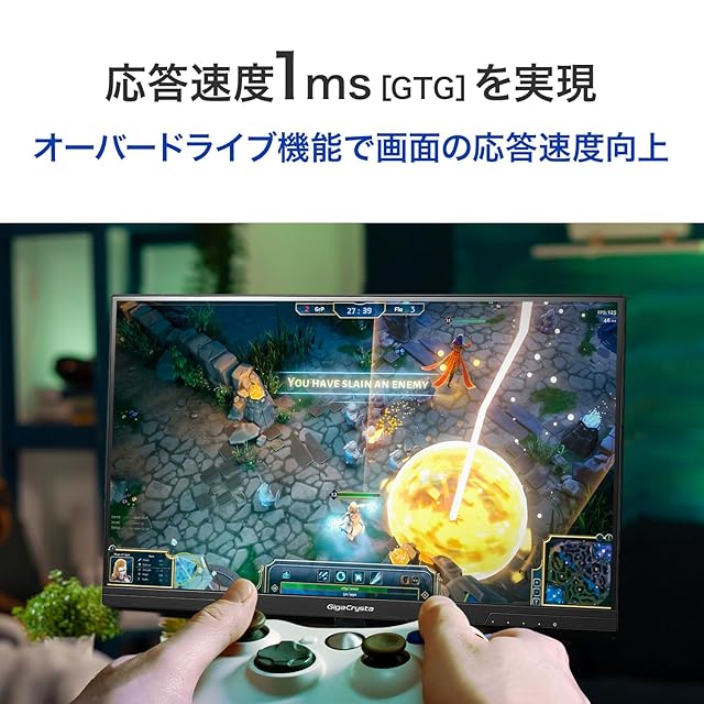 【オーバードライブ機能で応答速度1ms[GTG]を実現】ADSパネルの中でも応答速度の速いパネルを採用!「ダイナミックOD」機能を「トップスピード」に設定することで、応答速度を最大1ms[GTG]まで高めることが可能です。「トップスピード」設定は応答速度を最優先にしたモードのため、映像によっては逆残像や色ズレが目立つ場合があります。画質とのバランスを重視する方には、「レベル3」以下の設定がおすすめです。「レベル3」設定時でも、応答速度は2ms[GTG]と高速で、快適なゲームプレイを実現します。