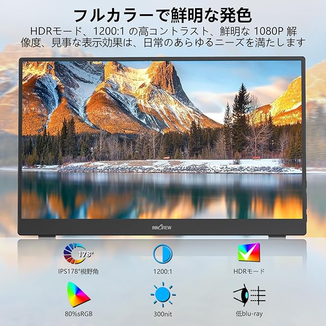 モバイルモニター 15.6インチ 自立型 モバイルディスプレイ InnoView ポータブルモニター ゲーミングモニター IPS液晶パネル 1920*1080 FHD 薄型 軽量 持ち運び 壁掛けに対応 Switch/PS3/PS4/PS5/Xbox One/PC/スマホ/USBType-C/標準HDMI対応 サブモニター