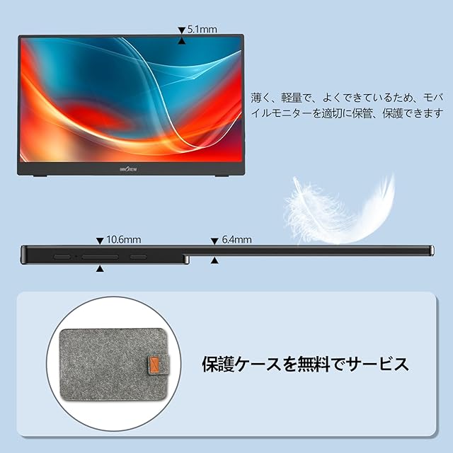 【商品&サポート】①商品出荷前に100%検品し、初期不良などの心配がございません。30日間無料返金と交換が対応します。ご購入日から1年間が付き、登録すれば、さらに2年間も延長できます。期間に製品は不具合が生じた場合は(人為的でない)、返金、交換、修理が対応します。②アフターサービス:当社はモバイルモニターの専門メーカーであり、技術問題が年中無休で対応できます。ご不明な点やご質問がございましたら、お気軽にご連絡ください。