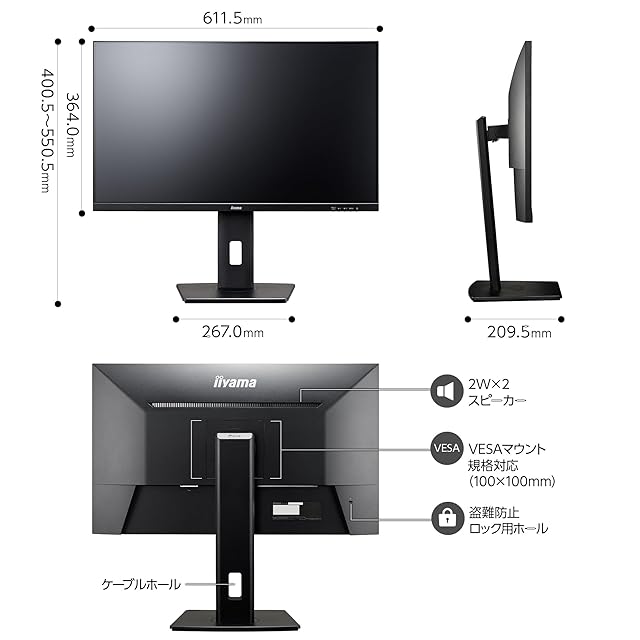 [サイズ]611.5(幅)×400.5~550.5(高)×209.5(奥行)mm/重量:5.4kg(スタンド含む) []5年間メーカー (※LCDパネル、バックライト含む ※の詳細についてはメーカーWebサイトにてご確認ください。)/24時間365日国内サポート