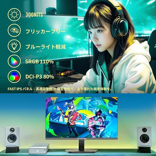 商品名:Minifire 24インチゲーミングモニター 200Hz 1ms応答 FHD 非光沢 FastIPSパネル FreeSync FHD HDR10 DC1-P380% sRGB110% 角度調整 目に優しい VESA対応 HDMI+DP搭載 5年 スピーカー内蔵(HDMIケーブル付き-MFG24F4-200)