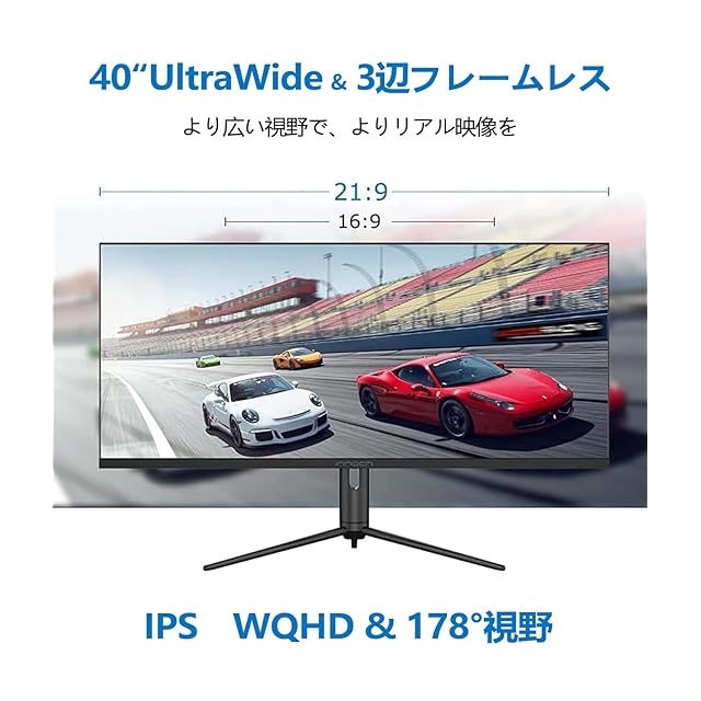 21:9ウルトラワイドモニター&WQHD(3440x1440) 2K高解像度: 21:9のアスペクト比で、従来のディスプレイより横方向に長く、広い作業空間と視野を備えます。多くの情報をまとめて映し出し、快適な作業空間を実現します。また、2K1440p(3440*1440)の高解像度で、ゲーミングする時、敵の様子を観察しやすく、出来事に対してアクションを素早く行えます。更に、web会議、映画鑑賞、音楽鑑賞など幅広く活用できます。