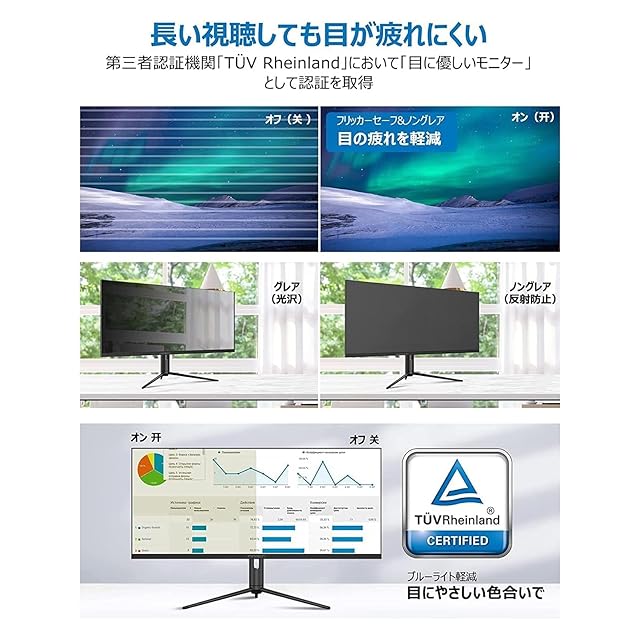 【低ブルーライト調整対応】目の健康を守るために、低ブルーライト調整機能を搭載。夜遅くまでのプレイでも、目の疲れを軽減し、快適に楽しめます。180Hz ゲーミングモニターで、長時間プレイでも安心。