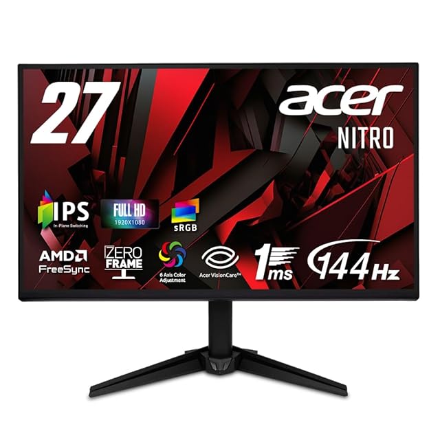 Acer 27インチ フルHD 144Hz 1ms(VRB) IPS 非光沢 sRGB 99% AMD FreeSync ブラックブースト VRB対応 ブルーライト低減 HDMI 1.4 DisplayPort v1.2 スピーカー・ヘッドホン端子 Acer Display Widget 6軸カラー調整 VESAマウント対応 Nitro ゲーミングモニター QG271P6bmipx
