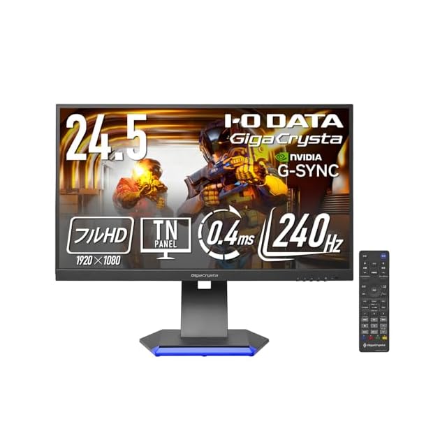 アイ・オー・データ IODATA ゲーミングモニター 24.5インチ GigaCrysta 240Hz 0.4ms TNパネル (HDMI×2/ DisplayPort/高さ調整/縦横回転/VESA対応/メーカー3年/土日サポート) EX-GC253U