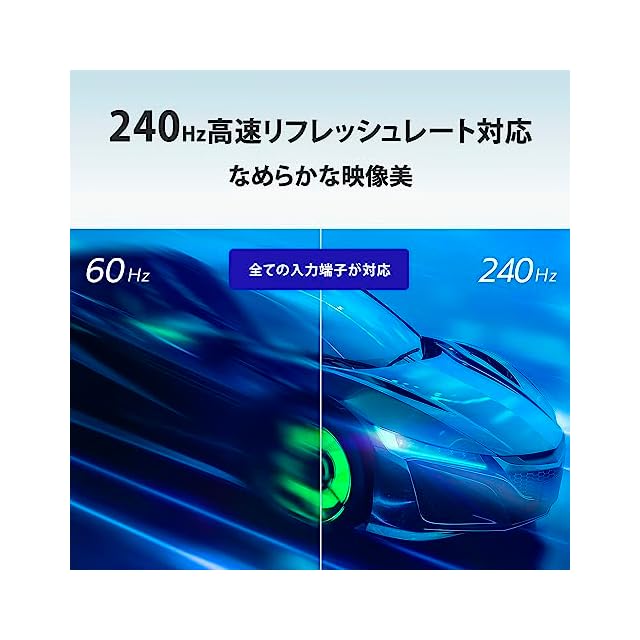 【HDMIをはじめ全ての入力端子で240Hzの高速リフレッシュレート対応!】HDMI×2、DisplayPortすべての入力端子で最大240Hzの高速リフレッシュレート対応。1秒間に最大240回映像を書き換えるので、一般的な60Hzのディスプレイの4倍、144Hz対応のゲーミングディスプレイの約1.6倍も高速に映像を表示させることになり、なめらかで美しい映像を表示可能です。